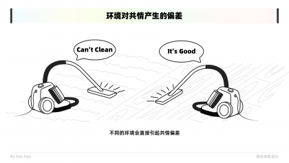 在體驗(yàn)設(shè)計(jì)的過程中,我們需要與目標(biāo)對(duì)象構(gòu)建共情時(shí),一定是有目的有意圖的。以使用性測試為例,往往我們都會(huì)設(shè)定一些產(chǎn)品測試任務(wù)和目標(biāo)給用戶,再進(jìn)行觀察和共情。這也將允許我們能夠在同一個(gè)或相似的場景事件中發(fā)生共情,這樣才能夠獲取到更真實(shí)有效的共情。以一個(gè)吸塵器產(chǎn)品為例,如果對(duì)方是在地毯上測試的,而你是在木質(zhì)地板的環(huán)境下去共情的,那么共情結(jié)果肯定是有所出入的。所以構(gòu)建一個(gè)共情目的甚至是環(huán)境是有效共情的一個(gè)重點(diǎn)之一。