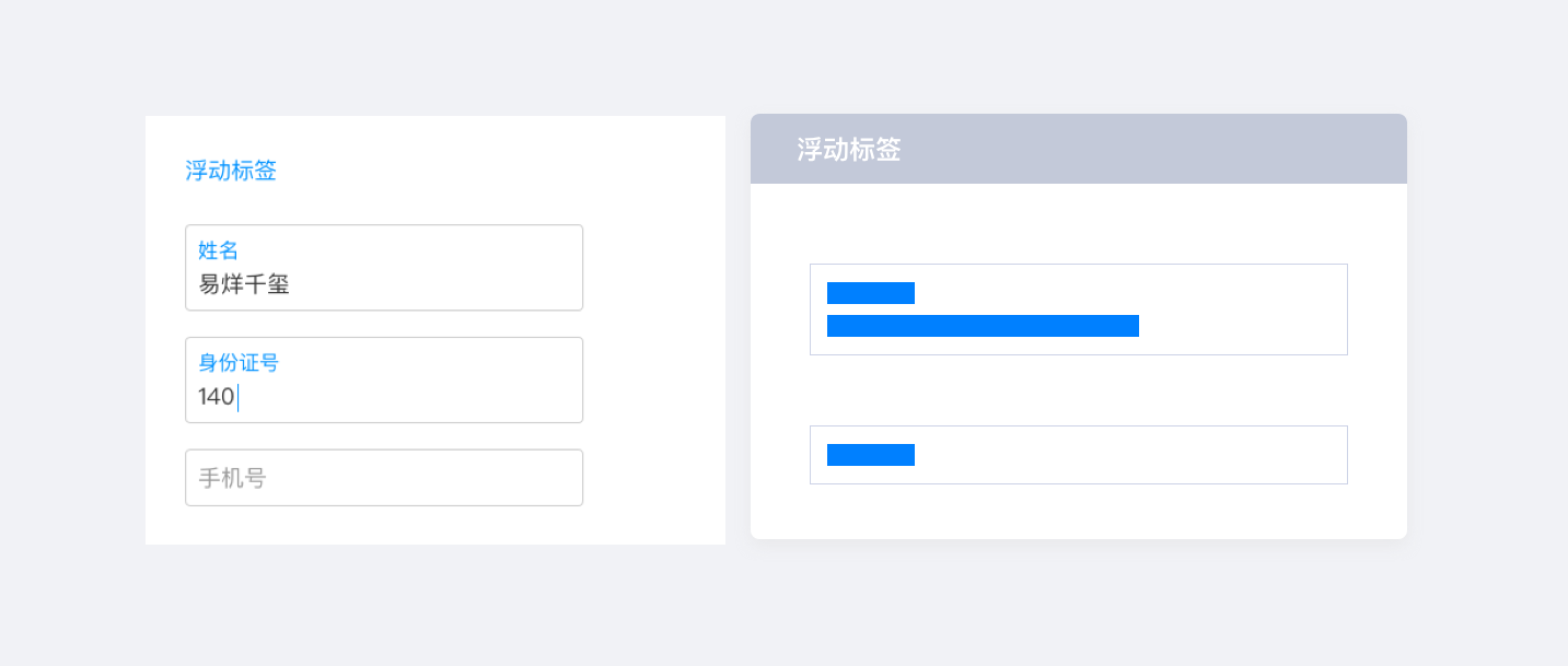 左標簽有左對齊和右對齊兩種形式, 行內標簽有行內文本標簽、行內圖標標簽、浮動標簽。