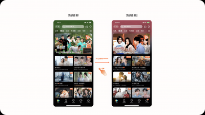 2.1.4設(shè)計亮點(diǎn):頂部背景跟隨banner顏色進(jìn)行變化頂部背景跟隨banner進(jìn)行變化,當(dāng)用戶滑動banner時頂部背景會跟隨banner的顏色進(jìn)行變化,這樣可以讓界面的配色看起來更加和諧,提升界面視覺一致性。同時賦予用戶體驗(yàn)驚喜感。