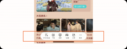 3.1.2產(chǎn)品亮點(diǎn):底部操作區(qū)功能相比其他產(chǎn)品,騰訊視頻在進(jìn)入豎屏播放頁后不會再頂部的視頻中默認(rèn)展示操作內(nèi)容,給用戶帶來更好的觀看體驗(yàn),并且把視頻相關(guān)的操作內(nèi)容放置底部做成一個底部操作區(qū),用戶可以在底部快速的對視頻進(jìn)行操作如:下載、投屏、一起看、分享等。而不是把功能分散在界面中,這樣不僅可以降低用戶的尋找這些高頻操作的成本,同時提升視頻的觀看體驗(yàn)。
