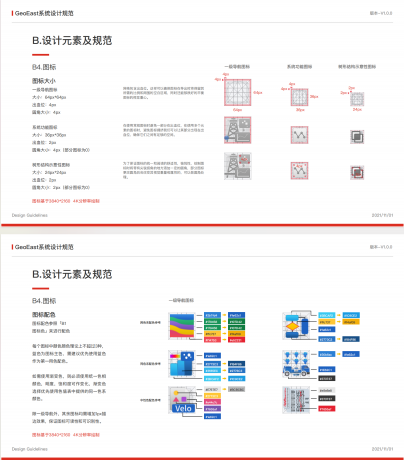 下圖是藍(lán)藍(lán)設(shè)計(jì)給中國石油設(shè)計(jì)界面和圖標(biāo)后,制定的UI規(guī)范。