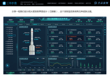 也分享一組我們給某單位設(shè)計的火箭發(fā)射界面設(shè)計(已脫敏),這個發(fā)射監(jiān)控系統(tǒng)有五種皮膚主題,分別應(yīng)用不同的場景,簡約版、科技藍、軍隊應(yīng)用、慶典重大時刻...