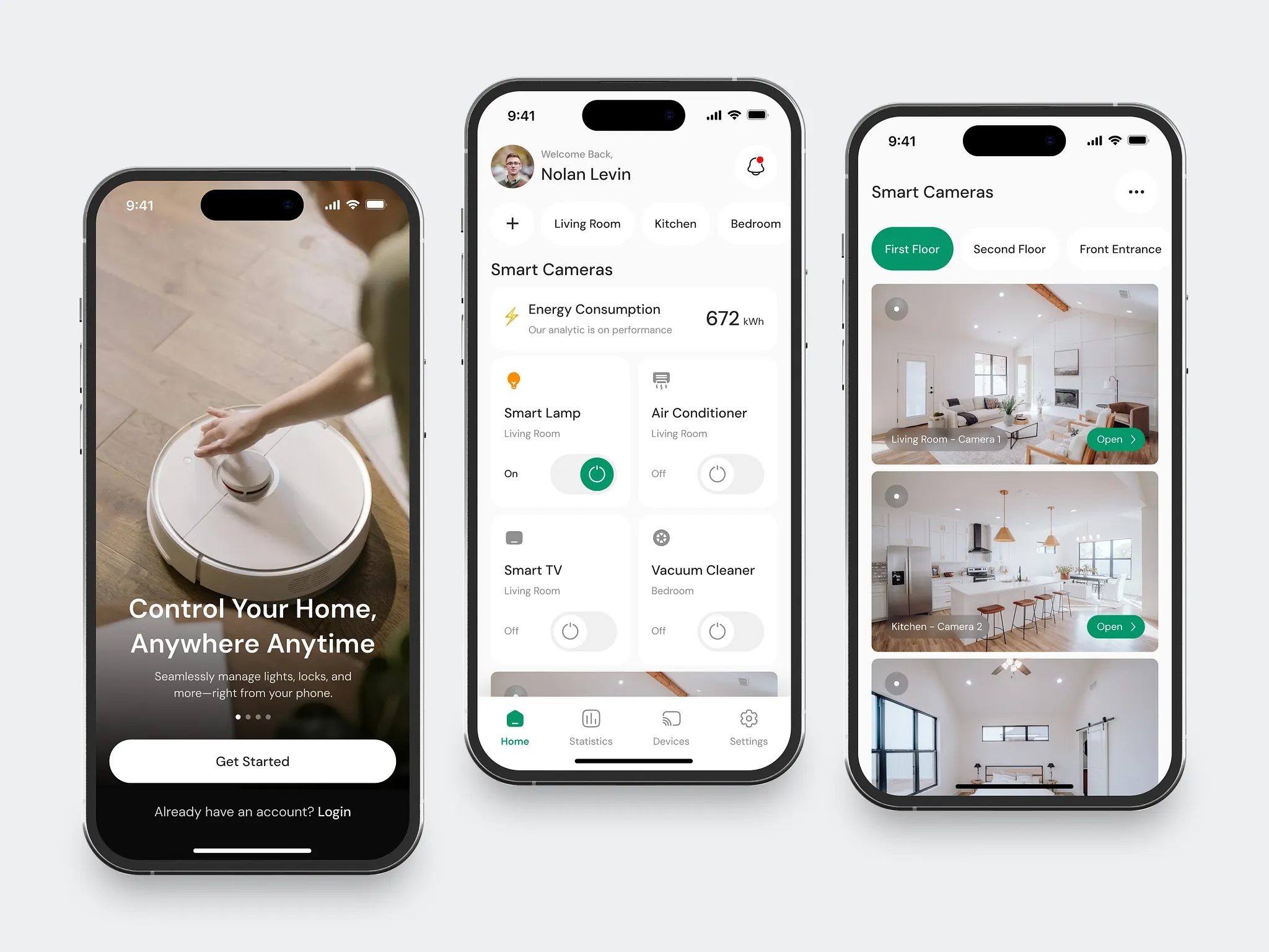 品牌一致性:全屋不同設備的 UI 元素(按鈕、開關、滑桿)保持統一視覺規范。