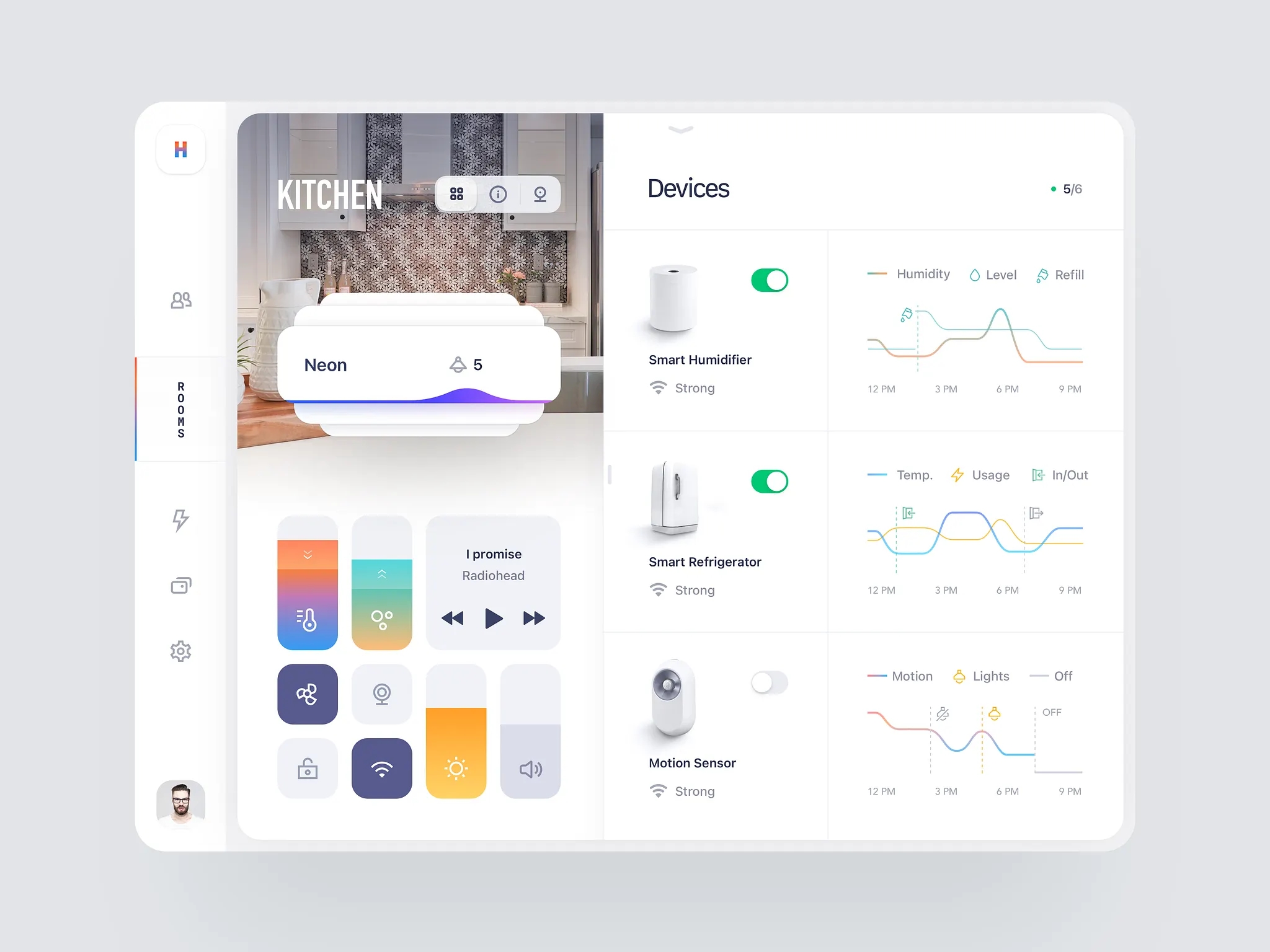在智能家居中,用戶關注的是結果,而不是過程。UI 應該優先顯示關鍵狀態,而非所有數據。