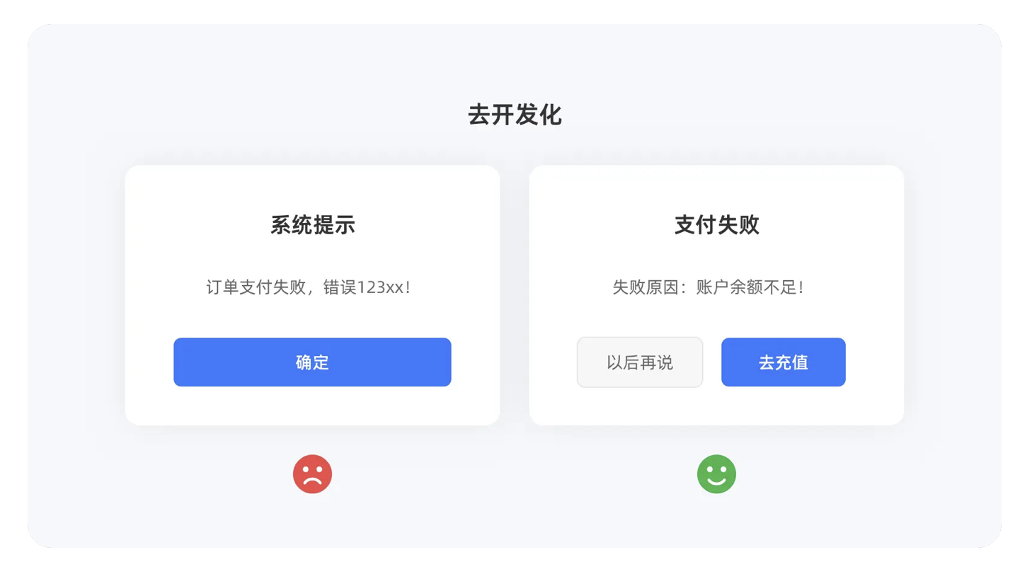 - 拒絕負面詞匯:避開 “不要”“不能”“失敗” 等詞匯,用正向表達替代,“暫未找到結(jié)果” 比 “沒有符合條件的內(nèi)容” 更溫和。
