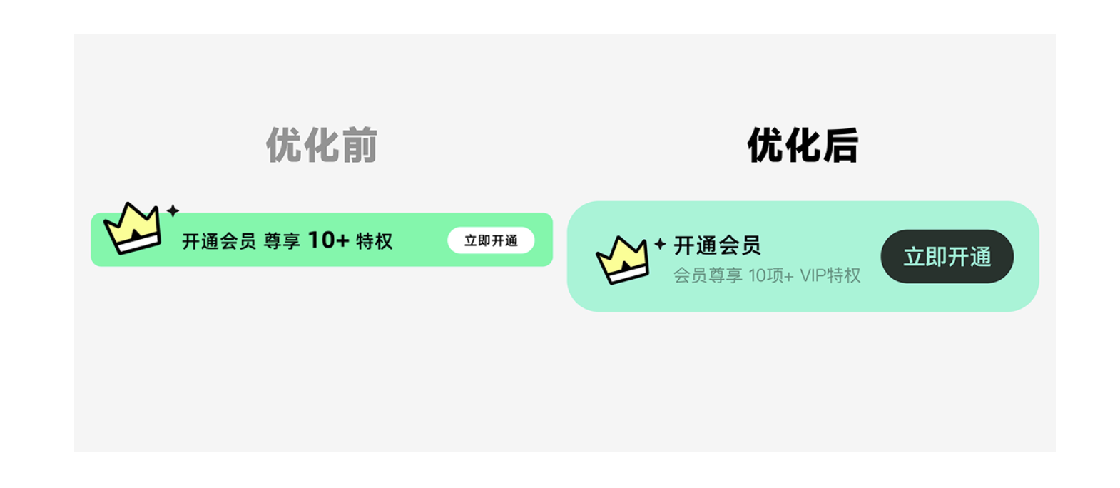 會(huì)員開(kāi)通、功能特權(quán)等活動(dòng)入口,是產(chǎn)品變現(xiàn)的關(guān)鍵場(chǎng)景,但很多設(shè)計(jì)流于普通,僅用簡(jiǎn)單文字 + 按鈕組合,缺乏吸引力。