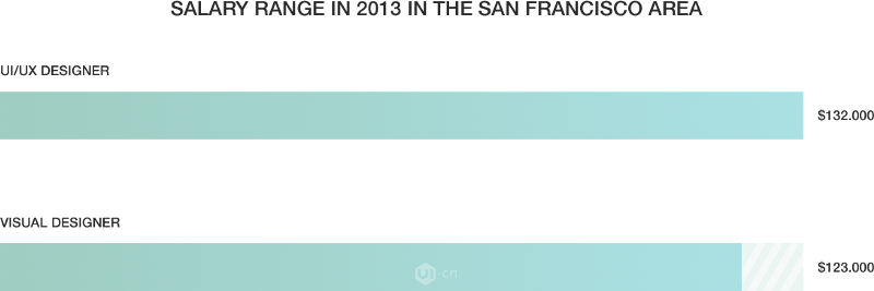 市場(chǎng)本身就是多學(xué)科性的。由Dashburst的圖表得出,擁有至少兩種技能的人,例如UI/UX設(shè)計(jì)或者UI/前端開發(fā),會(huì)得到比UI(視覺(jué))設(shè)計(jì)師每年多10k的薪水。