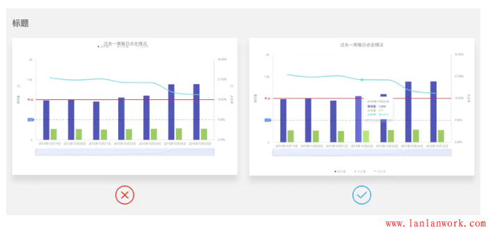 (1)輕量。眾所周知表格是可以承載數(shù)據(jù)的全面性,但將相同的數(shù)據(jù)用可視化展示時(shí),設(shè)計(jì)師總想將所有的信息堆砌在圖表上,顯得圖表非常笨重,因此增加了用戶的思考時(shí)間。在此建議明確你圖表類型的特點(diǎn),將主要信息呈現(xiàn)在圖表上或者分層展示圖表,比如數(shù)據(jù)鉆取功能。