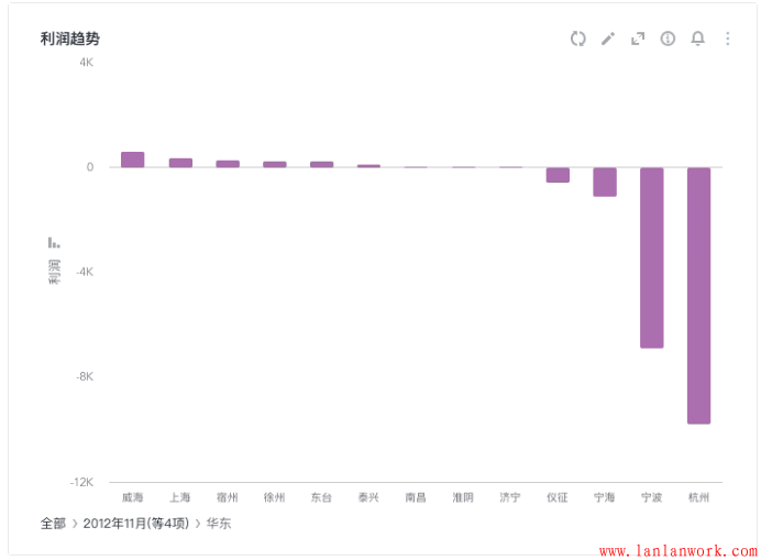 (1)比較數(shù)據(jù)差異情況。基于分類的數(shù)據(jù),可以通過(guò)比較數(shù)據(jù)來(lái)了解不同分類的差異,比如柱狀圖。基于流程的數(shù)據(jù),可以通過(guò)比較數(shù)據(jù)了解數(shù)據(jù)的變化趨勢(shì),比如折線圖。