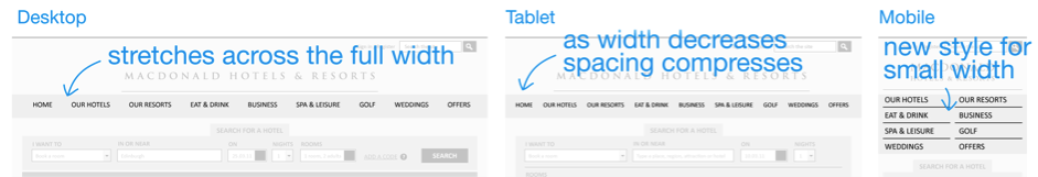 我們將使用一個真實(shí)的酒店網(wǎng)站 作為范例,來演示響應(yīng)式Web設(shè)計的流程。這個網(wǎng)站是我們在九月份剛剛為Macdonald連鎖酒店創(chuàng)建的。在整個設(shè)計開發(fā)流程中,有幾個關(guān)鍵步驟,是我們接下來要逐一展開學(xué)習(xí)的: