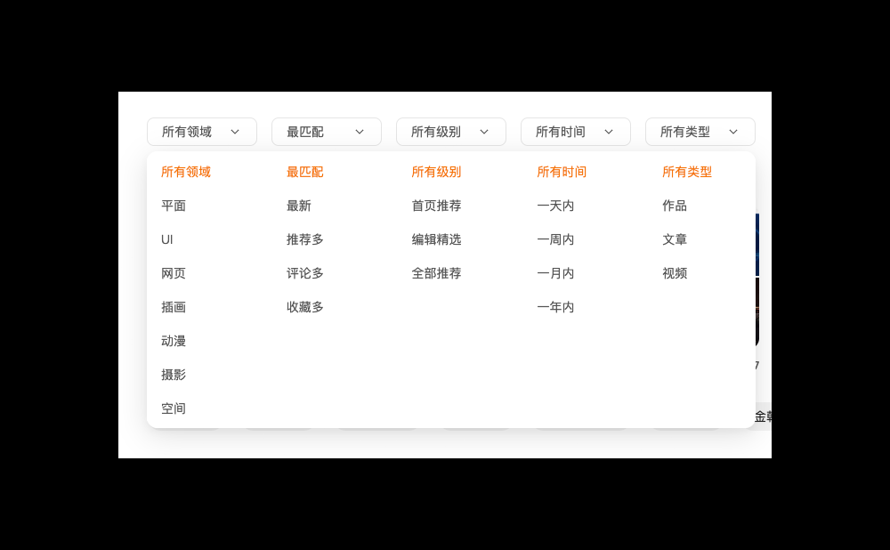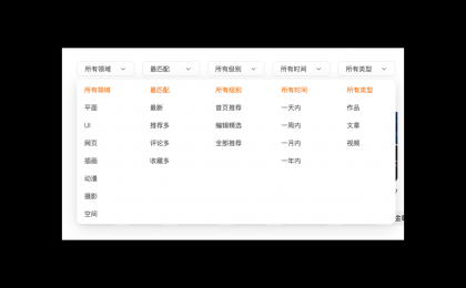 我們可以通過(guò),將這些選擇進(jìn)行分類(lèi)打包,以站酷為例子將類(lèi)似功能進(jìn)行分類(lèi)或者分頁(yè)面,幫助用戶(hù)梳理進(jìn)行梳理。